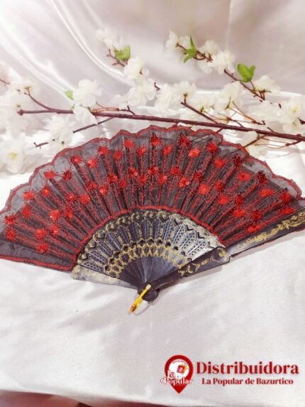 ABANICO FLOREZ NEGRO-ROJO