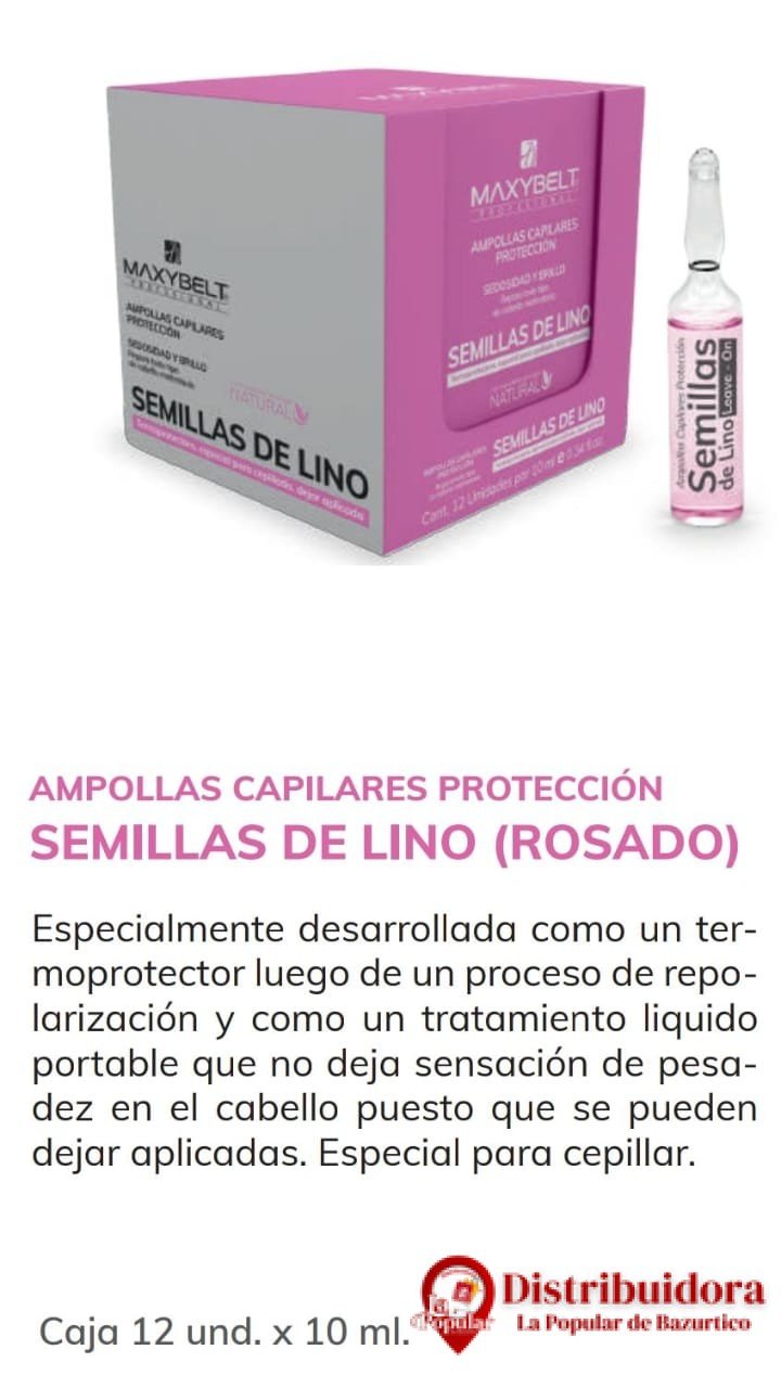 Inicio Cabello Tratamientos Capilares Ampollas AMPOLLA SEMILLA DE LINO ROSADA, TERMOPROTECTOR, 10ML DE MAXYBELT
