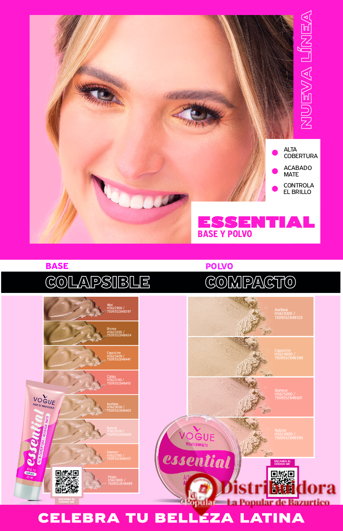 Base Essential, de larga duración con multibeneficios ideal para todo tipo de piel. Con un acabado mate que controla el brillo y alta cobertura para el cubrimiento de imperfecciones , además contiene protección FPS 10 ☀️, generando una sensación de humectación en la piel.